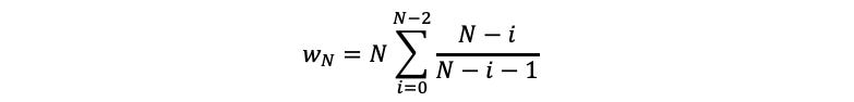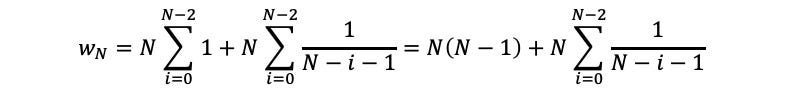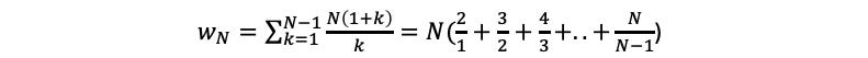 This is the average number of days to count the kth prisoner,. The total number of days is the sum of this quantity for k from 1 to N-1. Hence,