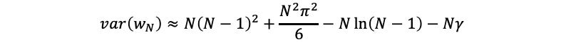 The expected time to win the game is not all the prisoners need to make a decision. The wait time is random, so they will also need an estimate of the standard deviation of the wait time to account for uncertainty. Using the geometric distributions, and the fact that Bob’s selection is independent of every other prisoner’s selection, we can add the variance of Bob’s wait time to the other prisoner’s wait time. The total variance of the wait time is: