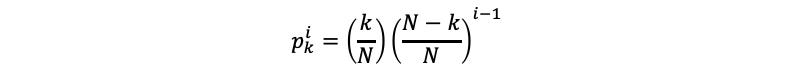 Suppose we’re in the middle of the game. Out of N prisoners, there are k prisoners remaining that have yet to turn on the light. The probability that one of the k prisoners will be selected to enter the room is