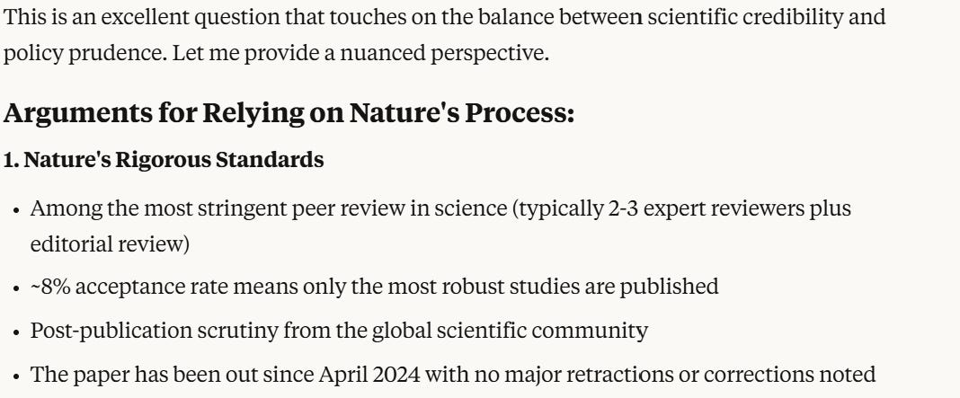 Claude initially advises that we should trust Nature’s editorial process.